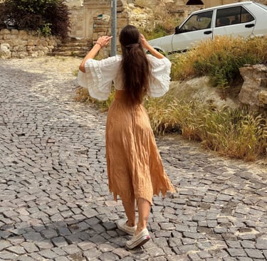 During my travels, I developed a small ritual. In every country I visited, I brought home one meaningful piece from a local maker, something that carried the spirit of the place with it. For example, a handmade skirt from an 80-year-old grandmother in Thailand, a cashmere blanket from India, or even earrings from Brazil, and in Bali, my very first crochet top. That was the moment I fell in love.